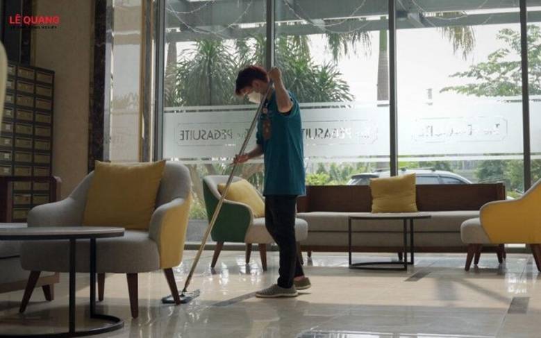 Vệ sinh khu vực sảnh chào và hành lang chung