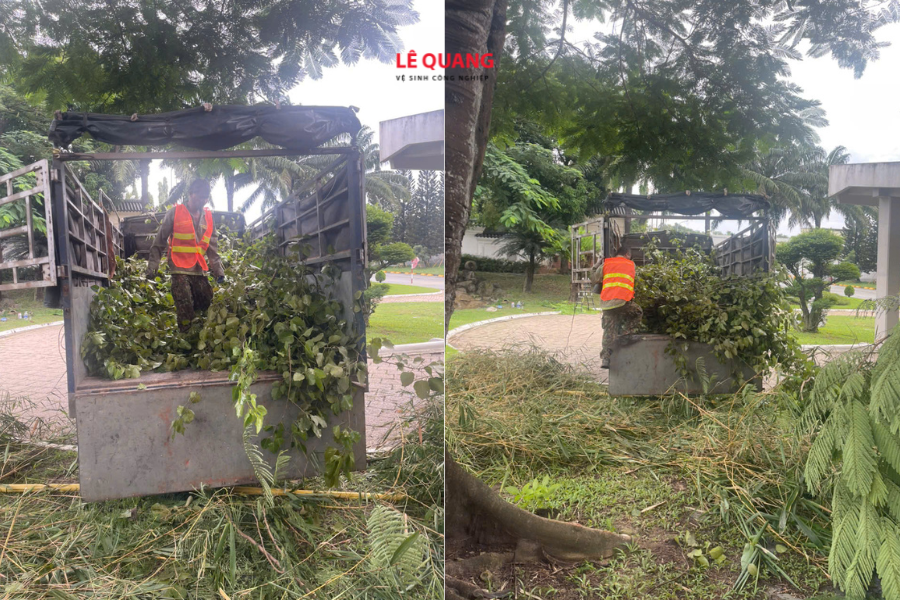 • Xử lý chất thải: Các cành lá, rác thải sau khi cắt tỉa cây được thu gom và vận chuyển đến nơi xử lý theo quy định, đảm bảo vệ sinh môi trường.