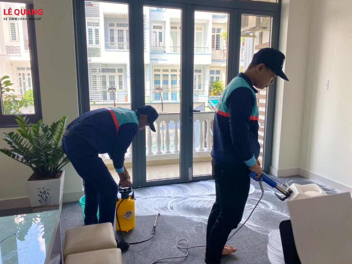 Hóa chất đạt chuẩn: Lê Quang sử dụng dung dịch làm sạch an toàn, có mùi hương nhẹ nhàng, không gây kích ứng cho nhân viên văn phòng.