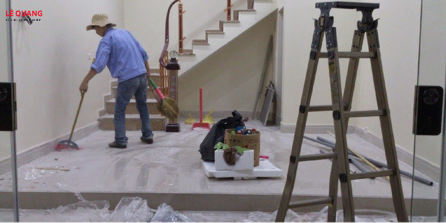 Việc lắp đặt thang máy thường đi kèm với các hoạt động khoan cắt, bụi xi măng và vụn kim loại phát tán khắp nhà. Dịch vụ vệ sinh nhà sau lắp thang máy của Lê Quang sẽ giúp bạn:
