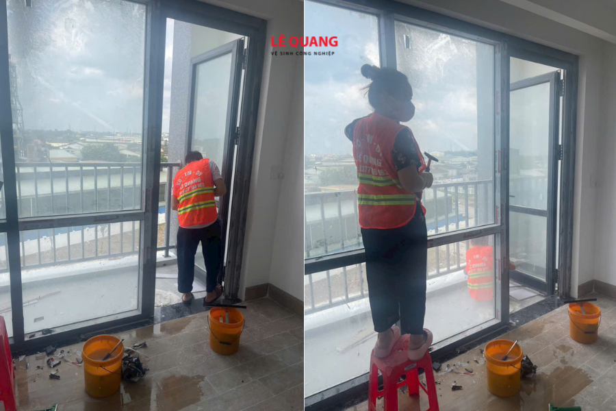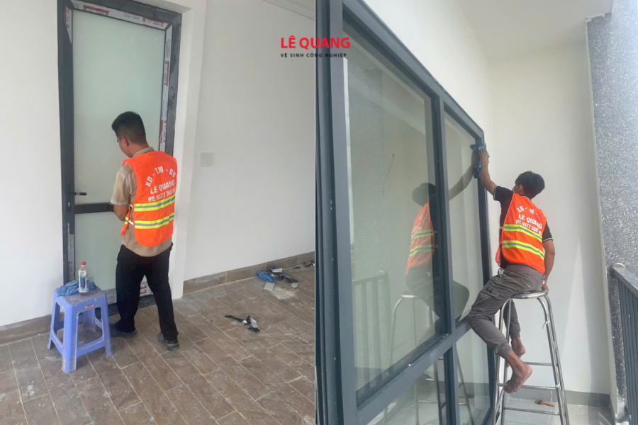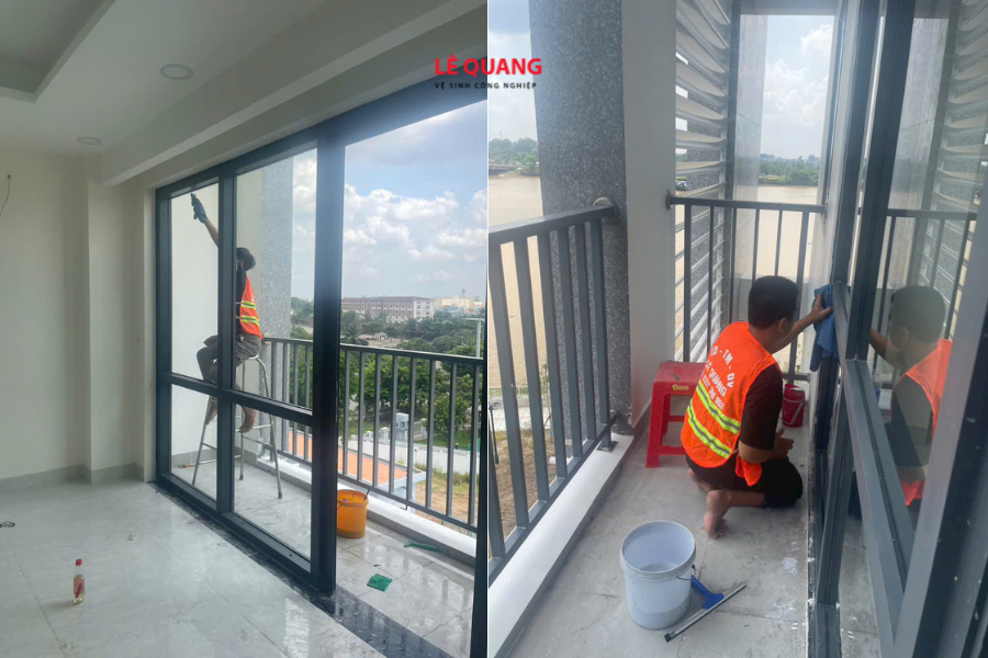 Đội ngũ dịch vụ vệ sinh công nghiệp Biên Hoà của chúng tôi đã thực hiện lau kính mặt trong và mặt ngoài bằng bộ dụng cụ chuyên dụng. Hệ thống khung nhôm, cửa sổ được lau chùi kỹ lưỡng, loại bỏ bụi mịn và vết ố do tác động của môi trường.