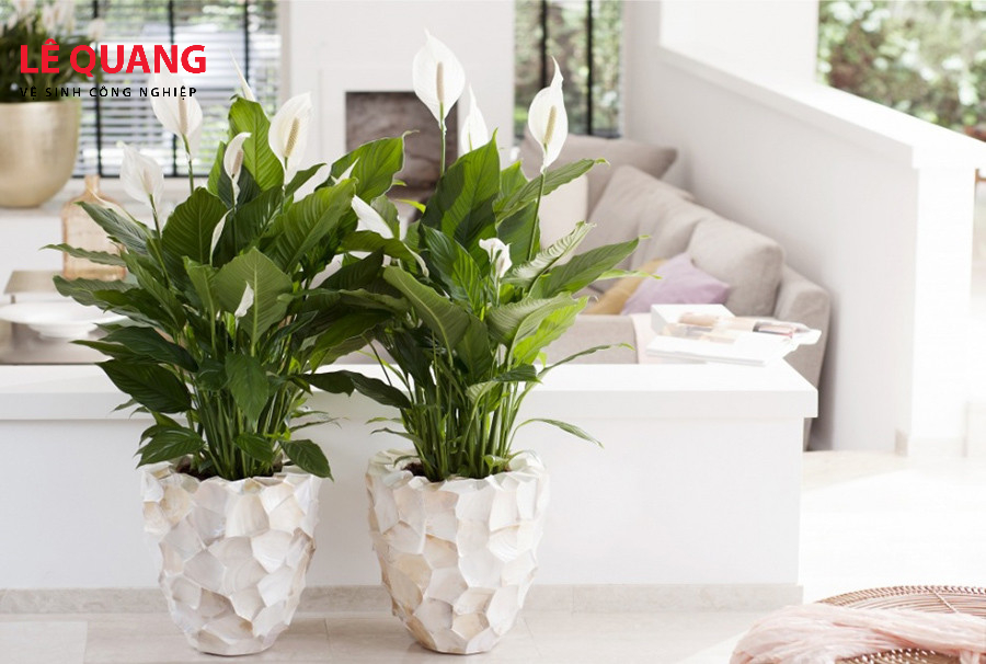 Nếu bạn muốn không gian có thêm sắc hoa trắng thanh nhã, Lan Ý là lựa chọn tuyệt vời. Cây có khả năng báo hiệu thiếu nước bằng cách rũ lá nhẹ, và chỉ cần được tưới nước, cây sẽ tươi tỉnh trở lại nhanh chóng.