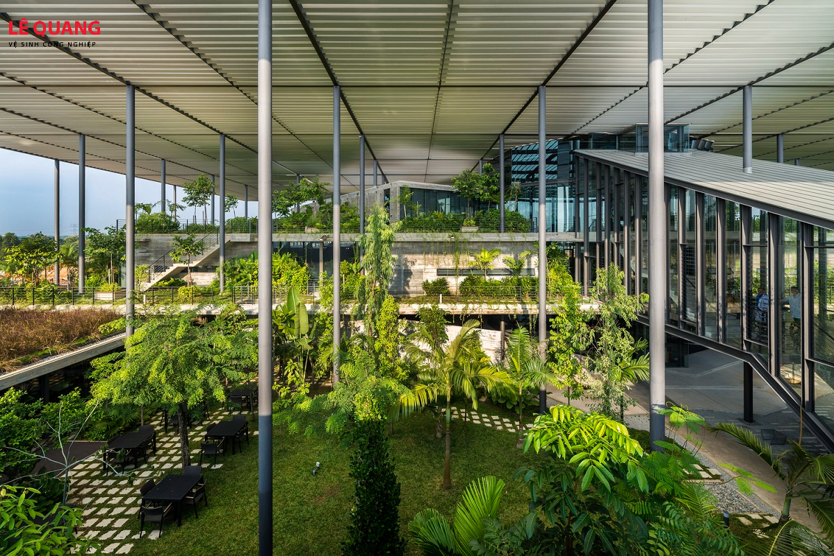 • Điều hòa nhiệt độ: Tán cây tạo bóng mát, giảm hiệu ứng đảo nhiệt đô thị và làm mát không gian nhà xưởng, giúp tiết kiệm năng lượng làm mát.