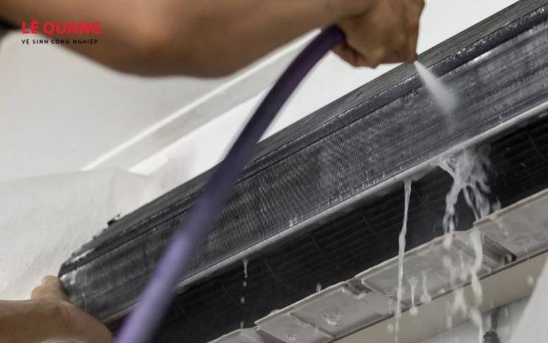 - Xịt rửa dàn ngưng tụ bằng hóa chất tẩy rửa chuyên dụng (nếu cần) để đánh bay các mảng bám cứng đầu.
