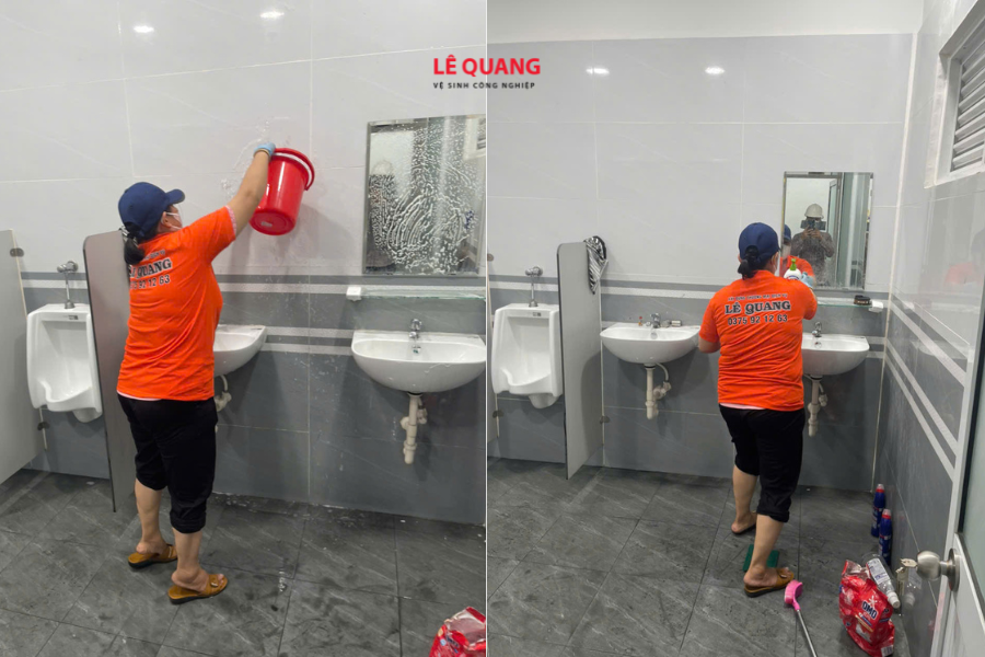 Kiểm tra chất lượng liên tục (QC): Giám sát viên Lê Quang sẽ kiểm tra chất lượng làm sạch từng khu vực sau khi hoàn thành để đảm bảo mọi vết bẩn cứng đầu đều được xử lý triệt để.