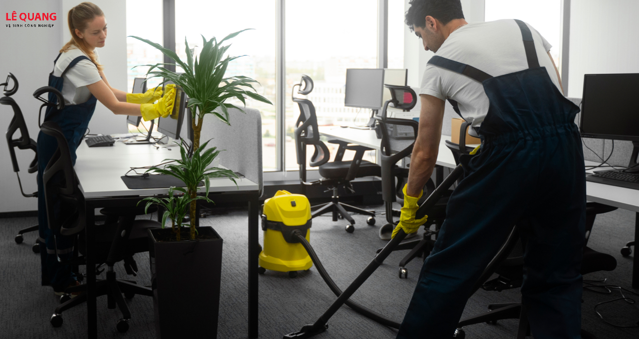 Lê Quang linh hoạt theo lịch của doanh nghiệp. Phần lớn khách hàng chọn thực hiện sau 18h hoặc vào buổi sáng sớm trước giờ làm việc để không ảnh hưởng nhân viên. Các hạng mục như giặt thảm, giặt ghế và lau kính mặt ngoài thường được lên lịch vào cuối tuần.